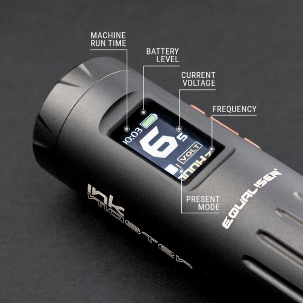 The Ink Master features a colorful yet easy-to-read LED display, showing essential parameters such as work time, current voltage, battery level, and the selected mode. You can adjust the three available modes (M1, M2, M3) according to your preferences, and switching between them takes just two clicks! Work comfortably and without limits with Equaliser.